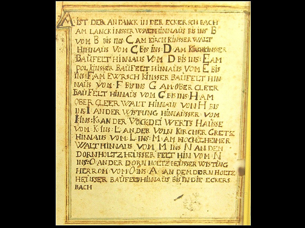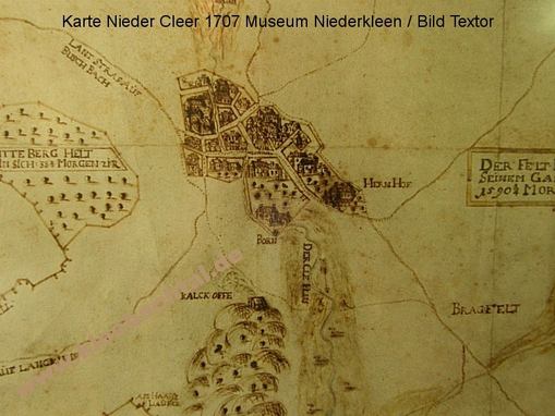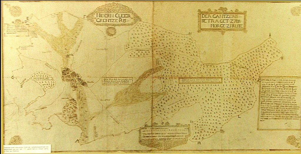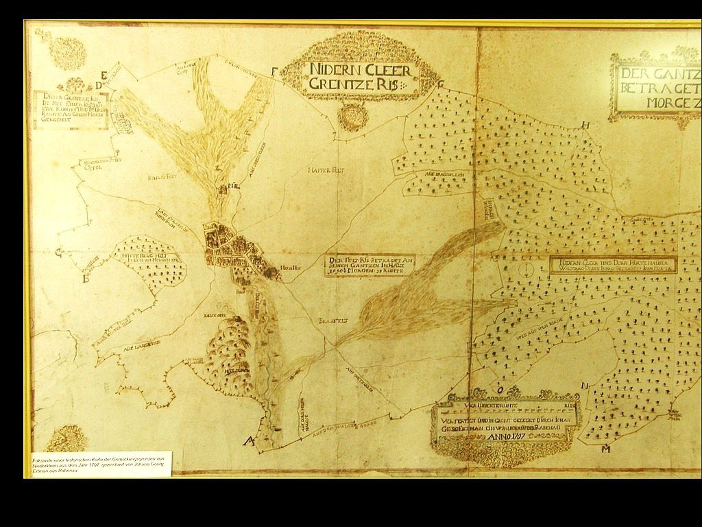 Niederkleener Gemarkungskarte Anno 1707 in Ausschnitten dargestellt.