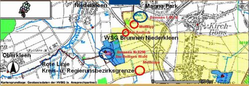 Ob hydraulische Verbindung zum Brunnen Nr.: 8298 besteht, welcher einen Großteil Niederkleens versorgt, ist selbst nach längerer Recherche unklar. Die Brunnen Nr.III und Nr.V wurden 1995 stillgelegt. Ihre wasserrechtliche Betriebserlaubnis ist mit dem Jahr 2002 (2004) erloschen.